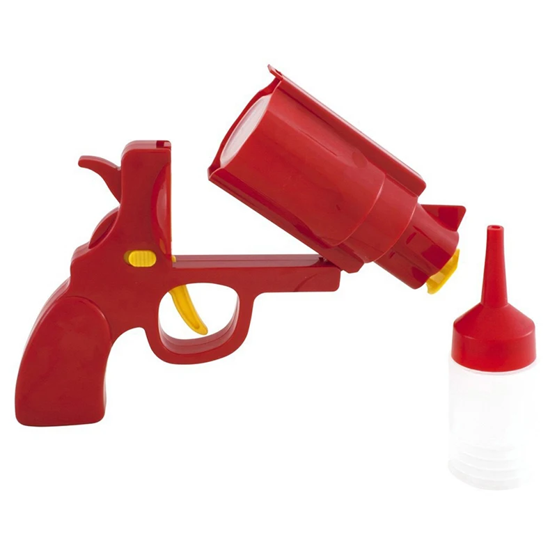 These novel condiment dispensers are designed to look like classic six-shooter guns, adding a dash of fun and excitement to every meal. Made from food-grade plastic, these dispensers are as durable as they are whimsical, perfect for barbecue enthusiasts, party throwers, and anyone who loves to add a bit of flair to their culinary creations."Saucy Shooters" aren't just about the looks; they're incredibly functional, too.