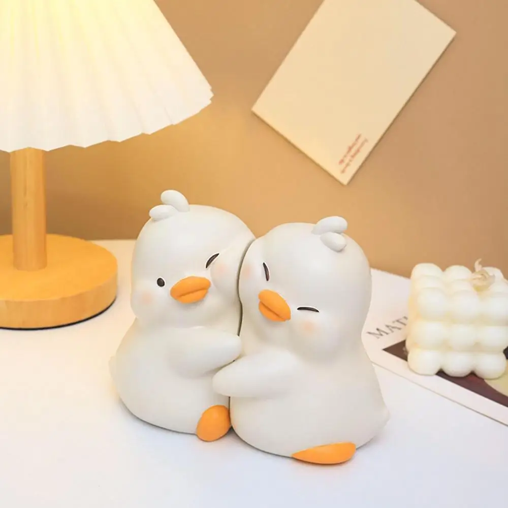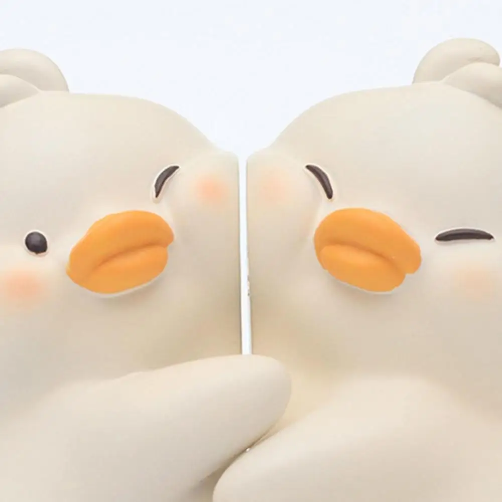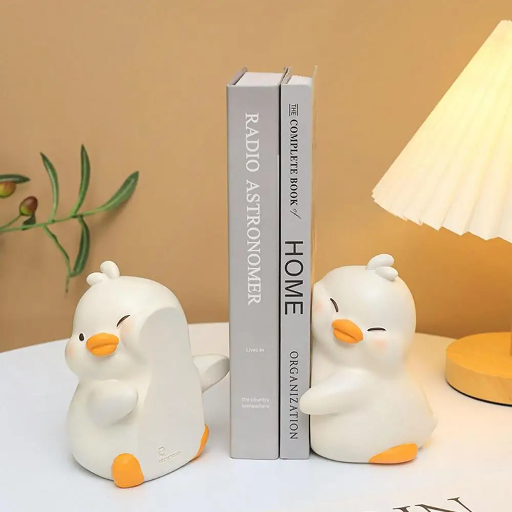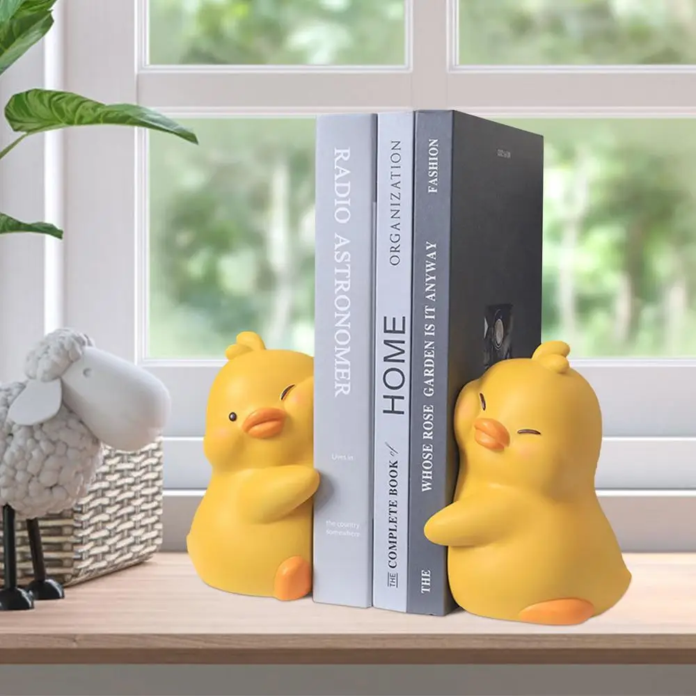 1、Playful Cute Duck: This adorable duck looks chubby, eyes closed, smiling, and in a hugging pose. These whimsical bookends are sure to bring a smile to your face every time you see them.2、Neat Bookcase: Cartoon Duck Bookends keep books tidy and upright on your bookshelves with these decorative bookends that can also hold magazines and other items.